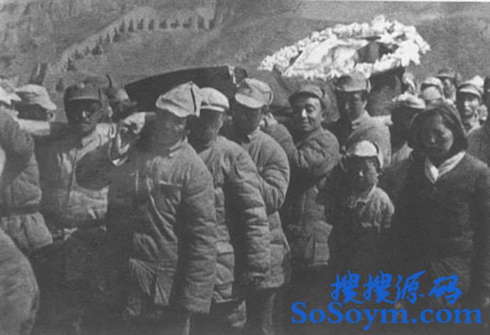 1942年毛泽东朱德等为张浩抬棺柩。