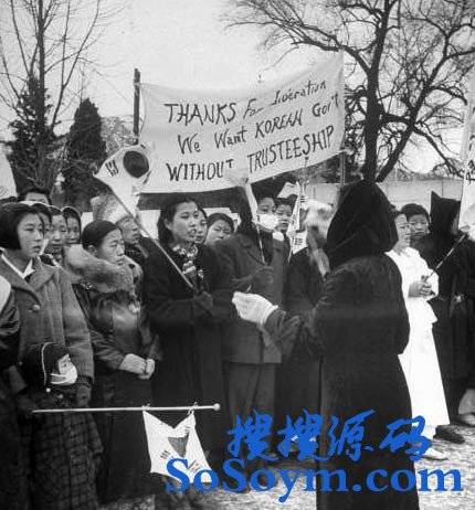 1946年韩国妇女集会反对托管。韩国民间人士组成“反对托管国民总动员委员会”,发表宣言,举行集会和游行, 开展了一场大规模的“反托管运动”。